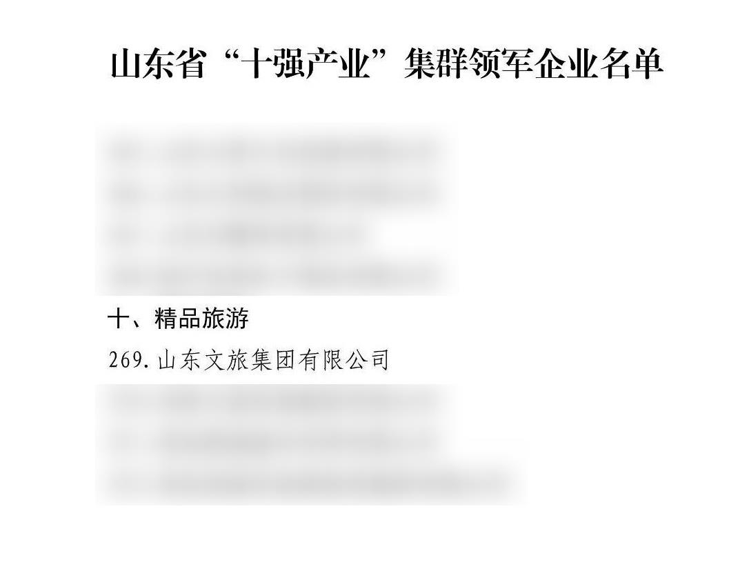 • 山東文旅集團入選山東省“十強產業”集群領軍企業