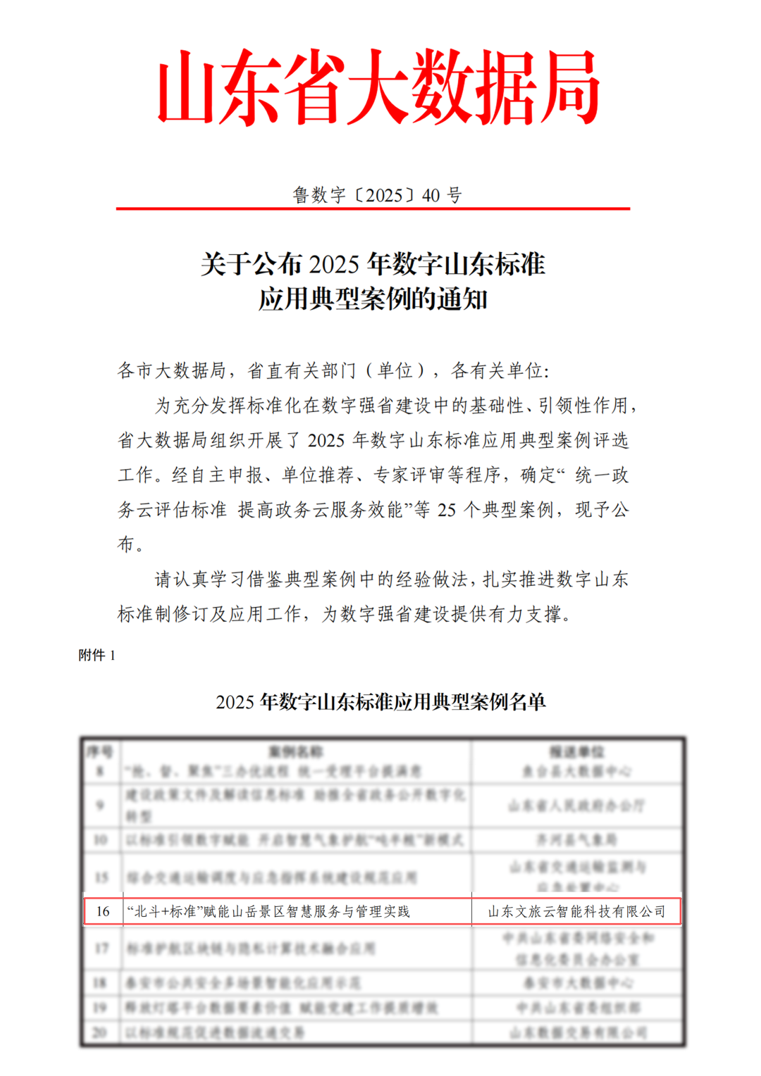 近日,山東省大數(shù)據(jù)局正式公布2025年數(shù)字山東標(biāo)準(zhǔn)應(yīng)用典型案例名單,文旅云公司申報的《“北斗+標(biāo)準(zhǔn)”賦能山岳景區(qū)智慧服務(wù)與管理實踐》案例成功入選。